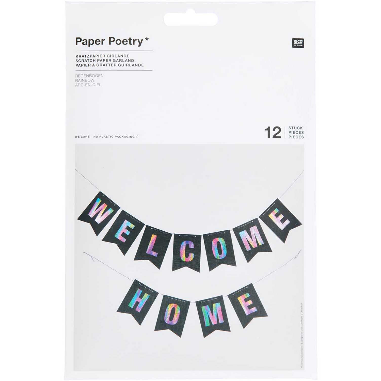Die Girlande, bestehend aus 12 Kratzpapier-Wimpeln, eignet sich ideal für individuelle Schriftzüge oder verschiedene Muster und ist damit eine tolle Dekoration für besondere Anlässe und Partys. Hinter der schwarzen Oberfläche verbirgt sich ein buntes Regenbogen-Muster, das darauf wartet freigekratzt zu werden. Der benötigte Holzkratzer sowie farblich passendes Band sind im Set enthalten.