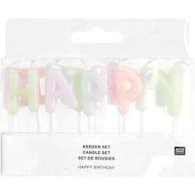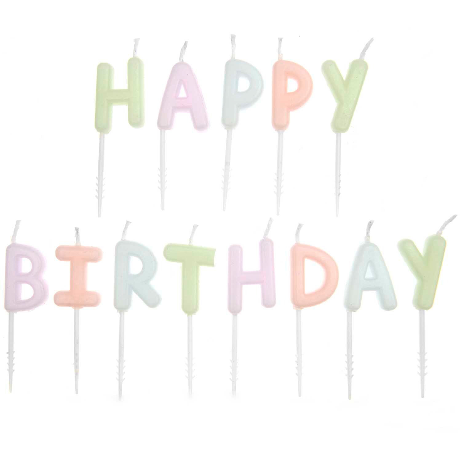 Kerzen dürfen auf keiner Geburtstagstorte fehlen! Besonders der 13-teilige Schriftzug „Happy Birthday“ sorgt für gute Laune an der Geburtstagstafel. Die Picker der Kerzen sind lebensmittelecht, weshalb sie bedenkenlos auf dem Kuchen oder der Festtagstorte platziert werden können. Dank der zarten Farbe können diese Kerzen sowohl bei Kindergeburtstagen als auch bei Geburtstagen für Erwachsene verwendet werden.