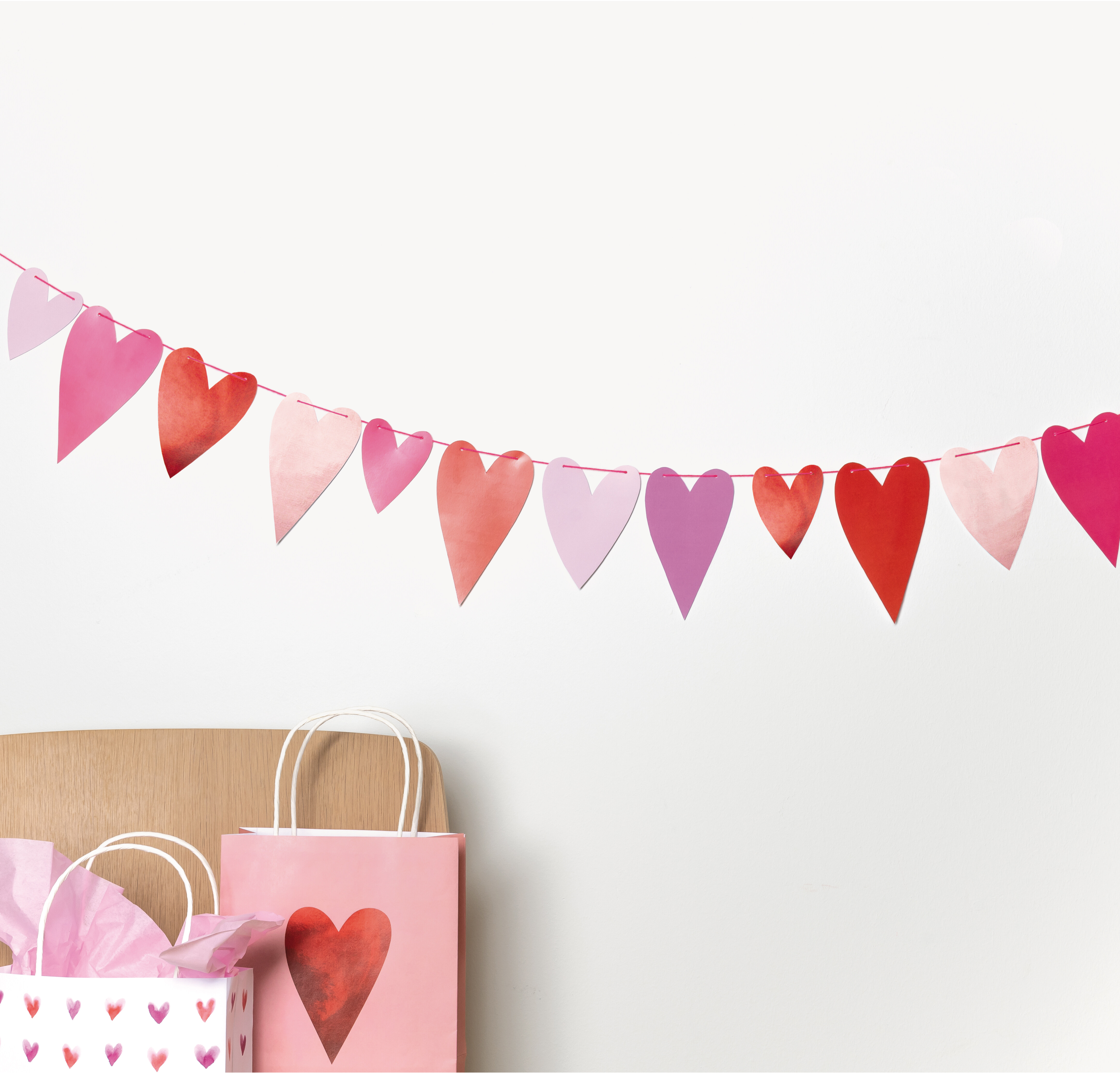 Mit dieser tollen Herzgirlande kann jeder Raum schnell in eine Partylocation umgewandelt werden! Es geht ganz einfach: Herzen auffädeln und aufhängen - fertig ist die Girlande.