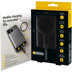 Die Powerbank MC10000 von Intenso kombiniert kompaktes Design und starke Leistung. Dank der integrierten Magnetfunktion kannst du die Powerbank einfach an der Rückseite deines Smartphones befestigen – perfekt, um dein Handy bequem beim Laden in der Hand zu halten oder sicher in der Tasche zu verstauen. Eine MagSafe-Funktion ist dabei nicht notwendig. Die MC10000 lädt dein Smartphone superschnell über das integrierte USB-C Kabel. Mit einer Kapazität von 10.000 mAh versorgt sie dein Smartphone, Tablet oder andere USB-C-Geräte mehrfach mit Energie. Dank zusätzlichem USB-C-Anschluss kannst du sogar mehrere Geräte gleichzeitig laden. Über die praktische 4-LED-Anzeige behältst du den Ladestand jederzeit im Blick. Die Intenso Powerbank MC10000 unterstützt Power Delivery bis zu 20 W und PPS-Technologie für eine intelligente, anpassungsfähige Stromabgabe. So lädst du kompatible Geräte schneller und effizienter – ob bei 5 V/3,0 A oder 12 V/1,67 A. Die Powerbank erkennt automatisch das optimale Ladeprofil. Auch der Eingang ist schnellladefähig und unterstützt Power Delivery mit bis zu 18 W, sodass die Powerbank selbst in kurzer Zeit wieder einsatzbereit ist. Hochwertige Lithium-Polymer-Zellen sorgen dabei für zuverlässige Leistung im kompakten Format. Mit ihren handlichen Maßen von 102 × 68 × 20 mm passt die Powerbank problemlos in jede Tasche. Die magnetische Rückseite ermöglicht eine sichere Befestigung am Smartphone – besonders praktisch mit dem beiliegenden selbstklebenden Metallring. Dank integrierter Sicherheitsfunktionen wie Überspannungs-, Entlade-, Überlade- und Kurzschlussschutz sind sowohl die Powerbank als auch deine Geräte optimal geschützt. Erhältlich in elegantem Grau – Schwarz ist die MC10000 der perfekte Begleiter für dich, wenn du mobile Energie im modernen Design suchst.