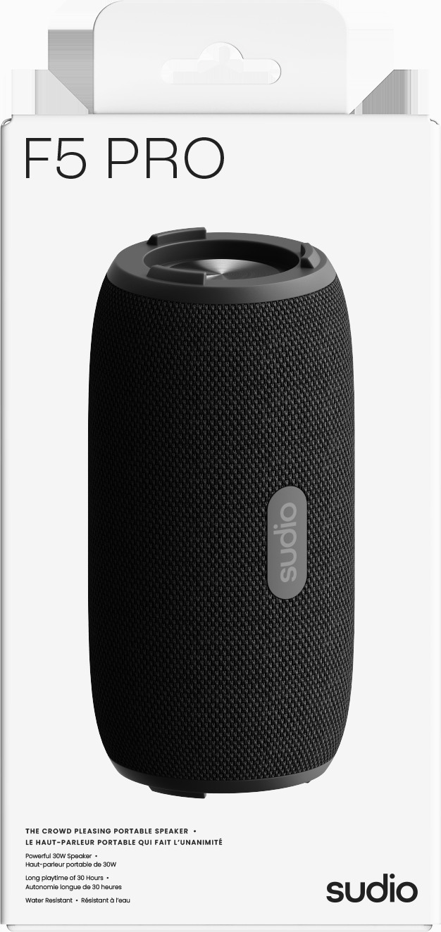 Der Sudio F5 Pro ist ein leistungsstarker, tragbarer Bluetooth-Lautsprecher, der darauf ausgelegt ist, jeden Raum mit sattem Klang zu füllen. Mit einer Ausgangsleistung von 30 Watt liefert er einen kräftigen Sound mit betonten, tiefen Bässen. Dank seiner robusten Bauweise und der IPX5-Zertifizierung ist er sowohl gegen Schweiss als auch gegen Spritzwasser geschützt, was ihn zum idealen Begleiter für unterwegs macht – egal ob drinnen oder draussen. Das Design ist schlicht und funktional: Der Lautsprecher kann sowohl stehend als auch liegend genutzt werden und besteht zudem aus recyceltem Kunststoff. Mit einer Akkulaufzeit von bis zu 30 Stunden sorgt er für langanhaltenden Musikgenuss ohne Unterbrechung.