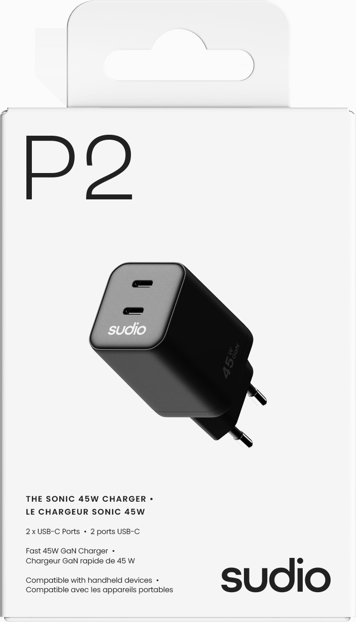 SUDIO USB-C GaN Wall Charger 45W P2EUBLK P2 EU, Black 310597-ITC