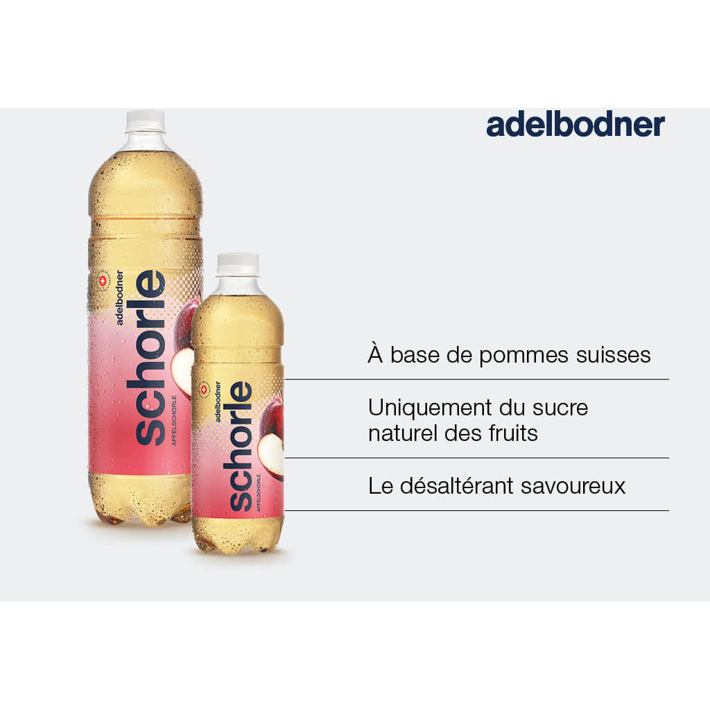 Adelbodner Apfelschorle, der schmackhafte Durstlöscher mit dem vollen Aroma aus Schweizer Äpfeln! Wo Schweiz draufsteht, ist auch Schweiz drin.
