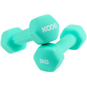 Zwei Hanteln aus massivem Gusseisen. Mit besonders griffigem, geschäumten PVC überzogen.