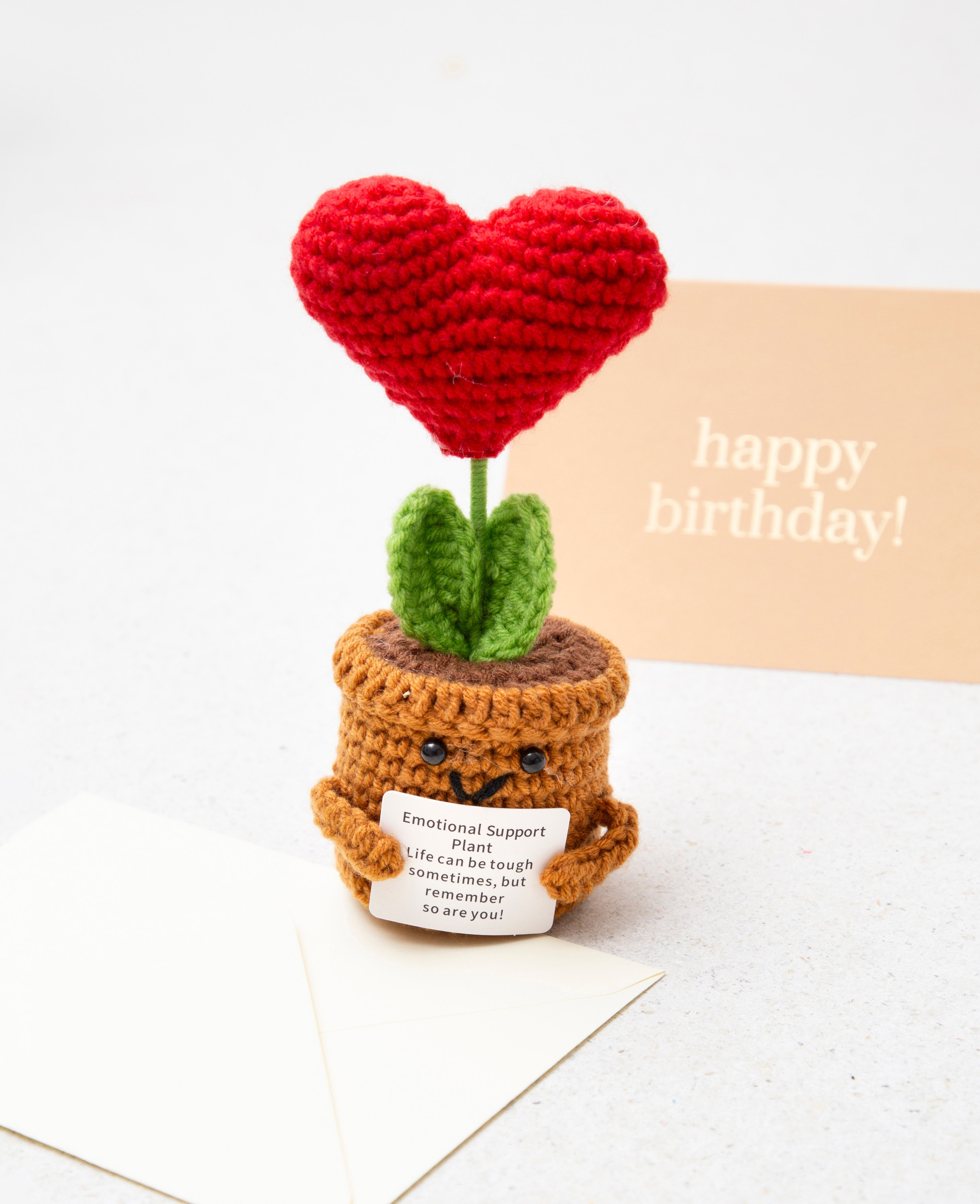 Du suchst nach einem originellen Geschenk? Dann bestelle dir noch heute diese niedliche Positive Plant! Das gehäkelte Plüschtier ist ideal als Geschenk, Aufmunterung oder Glücksbringer geeignet. Stelle den Blumentopf mit Herz auf deinen Schreibtisch, deinen Nachttisch oder nehme ihn mit zu wichtigen Prüfungen. Schenke das Mini Kuscheltier einem Menschen, der dir wichtig ist und zaubere ihm ein Lächeln ins Gesicht!