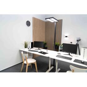 Die Luxula LED Büro-Stehleuchte DUO Line ist eine moderne und effiziente Beleuchtungslösung, die speziell für professionelle Arbeitsumgebungen entwickelt wurde. Mit einer Gesamtleistung von 120 Watt und der innovativen Up-/Downlight-Technologie sorgt diese Stehleuchte für eine gleichmässige und blendfreie Ausleuchtung des gesamten Arbeitsplatzes. Die Lampe bietet eine beeindruckende Helligkeit von 8500 Lumen und ein neutralweisses Licht mit einer Farbtemperatur von 4000 K, was sie ideal für konzentriertes Arbeiten macht. Dank des hohen Farbwiedergabeindex (CRI) von 98 und einem UGR-Wert von weniger als 16 ist das Licht angenehm und augenschonend, selbst bei längerer Nutzung. Die DUO Line ist nicht nur leistungsstark, sondern auch benutzerfreundlich, da sie über ein intuitives Touchpanel und eine praktische Memory-Funktion verfügt, die sich die letzten Einstellungen merkt. Das robuste Aluminiumgehäuse und die hochwertigen Bridgelux-LEDs garantieren eine lange Lebensdauer und zuverlässige Leistung, während die einfache Montage eine sofortige Nutzung ermöglicht.
