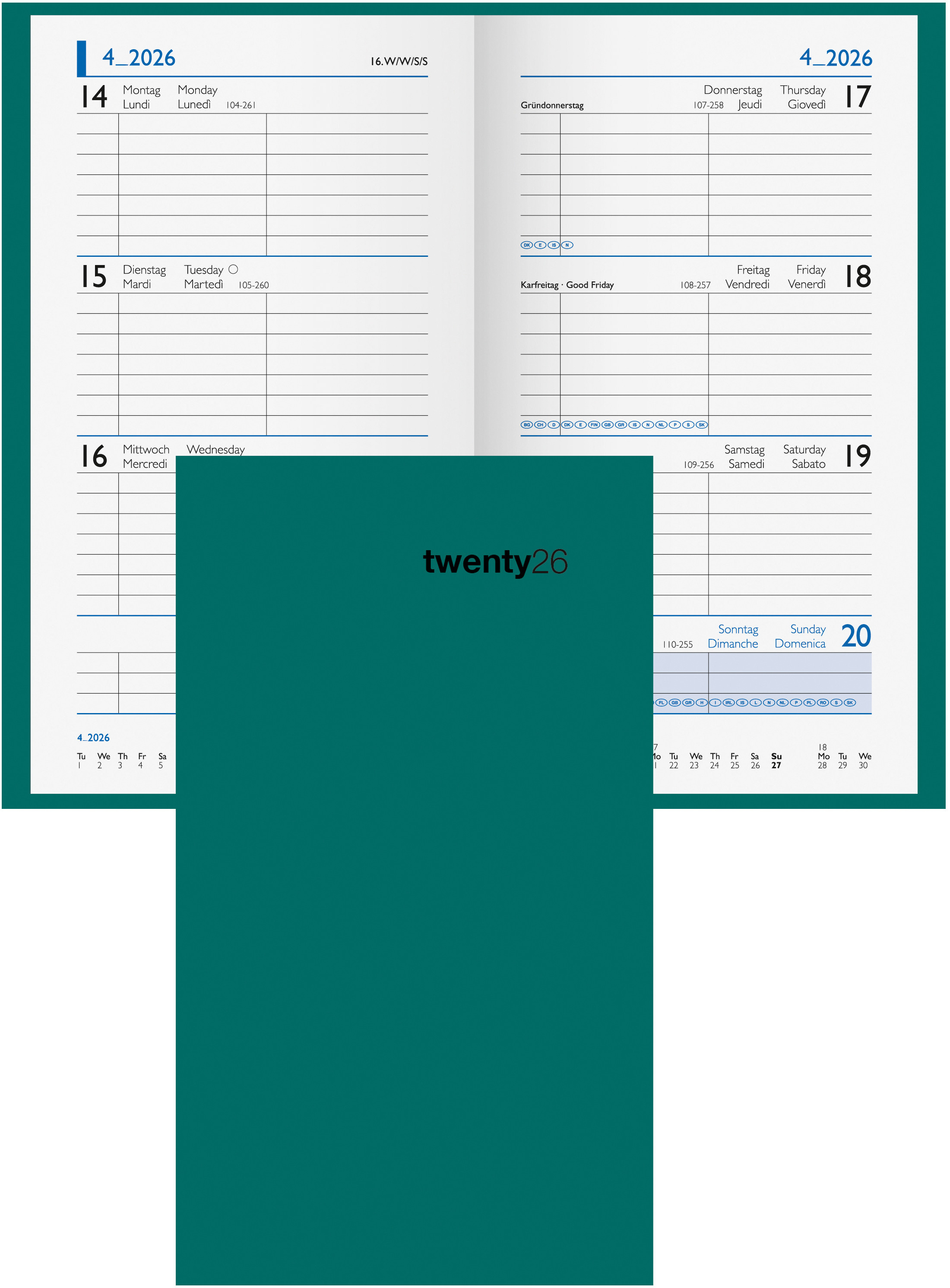 Die Taschenagenda Colorful eignet sich ausgezeichnet für den privaten Gebrauch. Unsere Taschenagenda mit 1 Woche pro Seite ist handlich, passt in jede Tasche und zeigt Ihnen Ihre wöchentlichen Termine in der Übersicht.